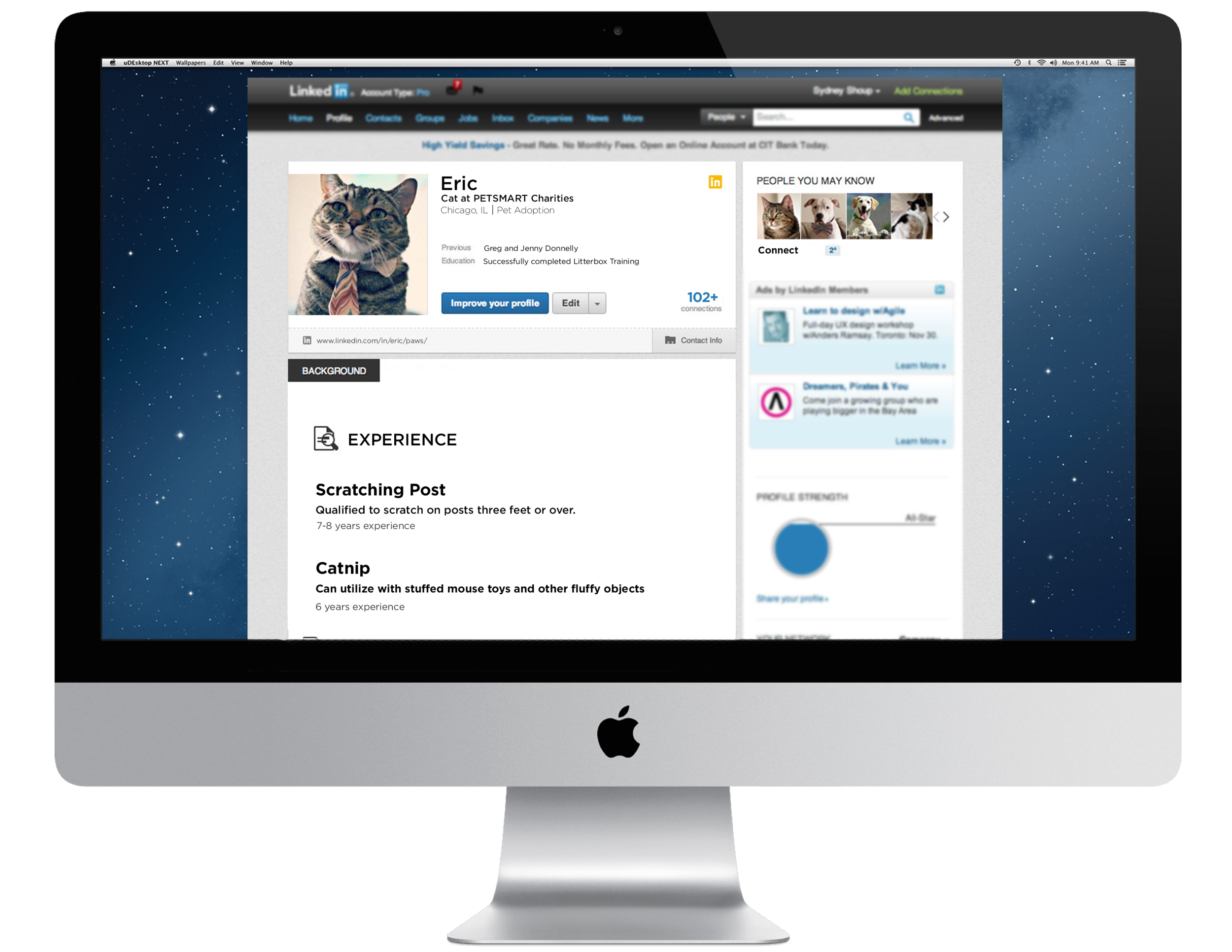 Professional Pet LinkedIn pages and adoption events hosted at offices. Memos sent letting office professionals know what pet professionals will be coming to the office to look for jobs/adoption.